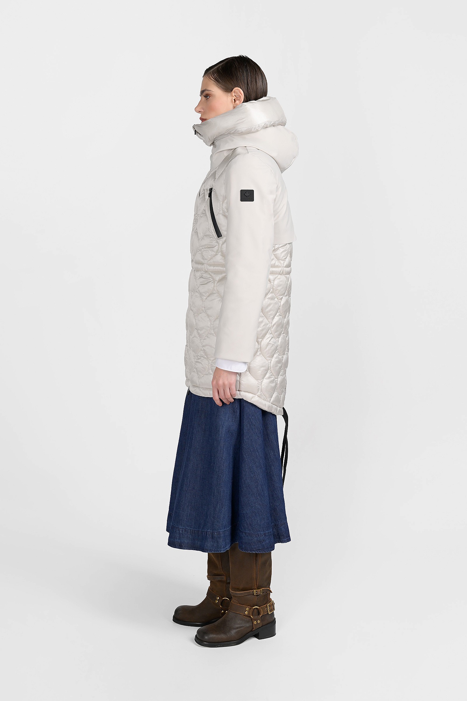 La Corey Coat è un cappotto tecnico pensato per chi ama unire funzionalità ed eleganza. Il tessuto Urban Lux Tech con trattamento WR garantisce protezione dagli agenti atmosferici, mentre la composizione stretch si adatta ai movimenti. Caratterizzato da una linea moderna e raffinata, è imbottito in poliestere per un calore leggero e uniforme. Ideale per look quotidiani che non rinunciano allo stile.